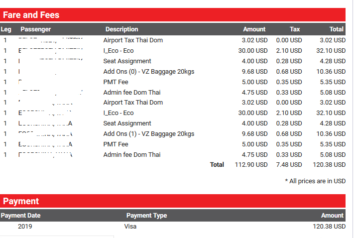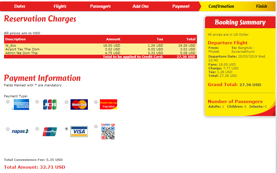 Далась тебе эта " Total Convenience Fee", тебе говорят что Тайским компаниям законом запрещено скрывать дополнительные платежи, например в https://www.bangkokair.com/