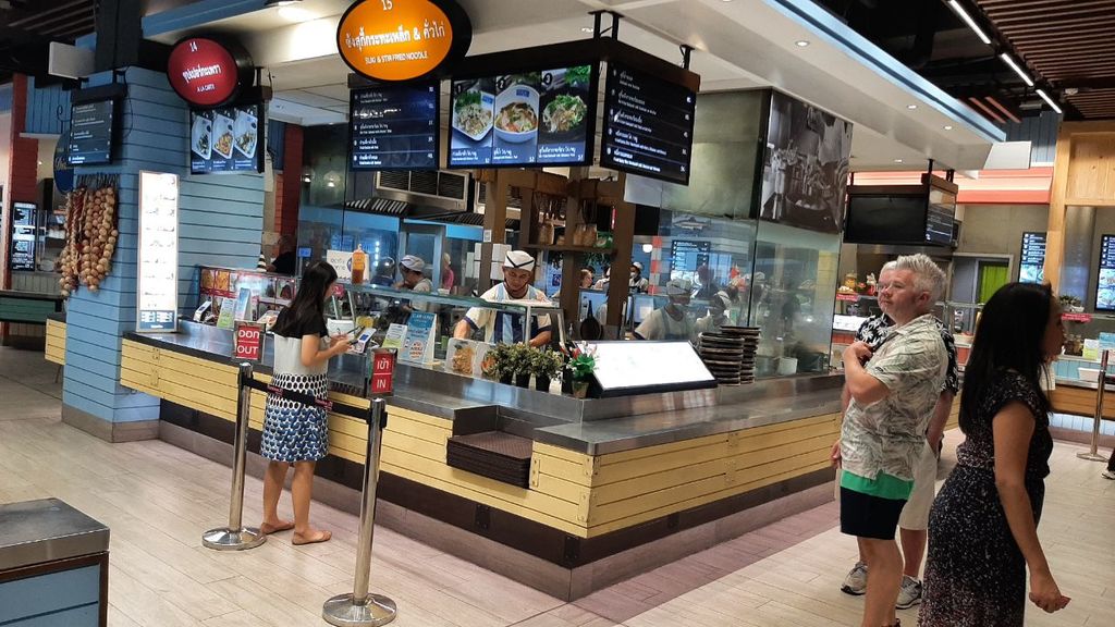 В терминале 21 возле самолёта,на малюсенькой сцене, ещё выступления делают и так же фут рынок с экзотикой.