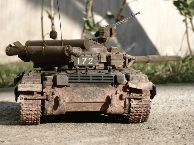 Вот первый мой танк,Т-72 такой каким я его хотел бы видеть,делал в подарок другу,любителю игры сталкер. Косяков вагон,фоткал с мобилки ночью под лампой,в реале блеска на модели нет.