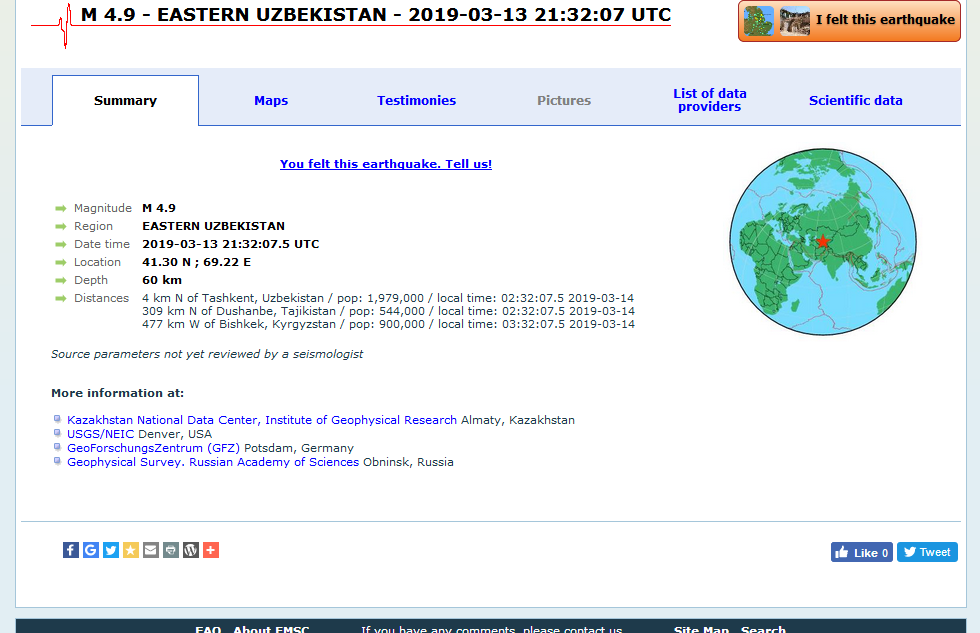 Posted 13.03.2019 21:46 (edited) Геофон говорит Киргизия, магнитуда 4,7 но на карте Казахстан указан. http://geofon.gfz-potsdam.de/eqinfo/event.php?id=gfz2019fbji Edited 13.03.2019 21:47 by Lamer 0 Share this post Link to post Share on other sites