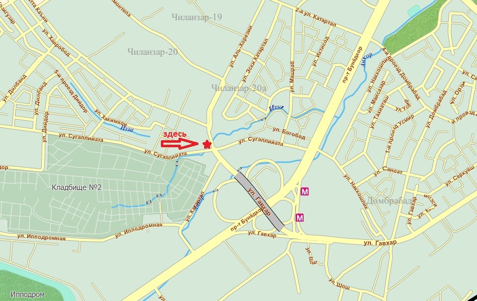 На углу перекрёстка пересечения улиц Сугаллиота и Аль Хорезми, проще говоря, там где начинается новая дорога в Алгоритм в здании боксёрского клуба "ТОШКУЧ". Ниже карта. Интересуйся, у них иногда сразу два вида, чайханский и свадебный. Чайханский они в 8 вечера открывают обычно. Ну сам разберёшься.