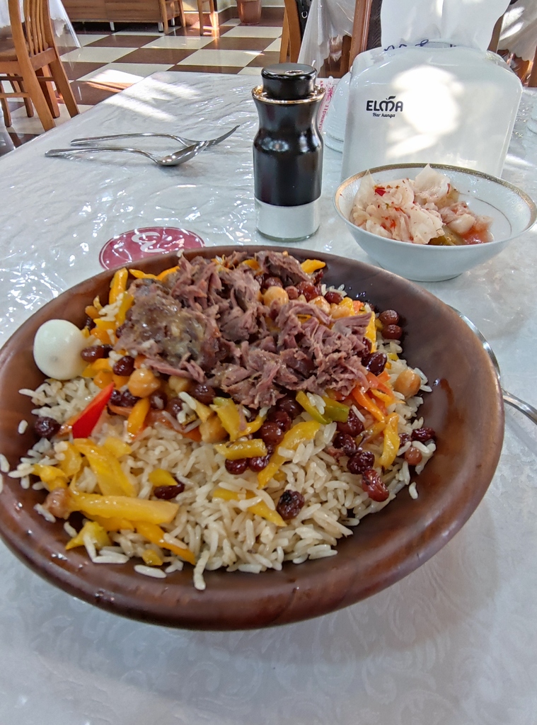 ел в долине в кафе, потом у кого то дома местный андижанский  плов - не понравился. А вот плов из девзиры понравился.