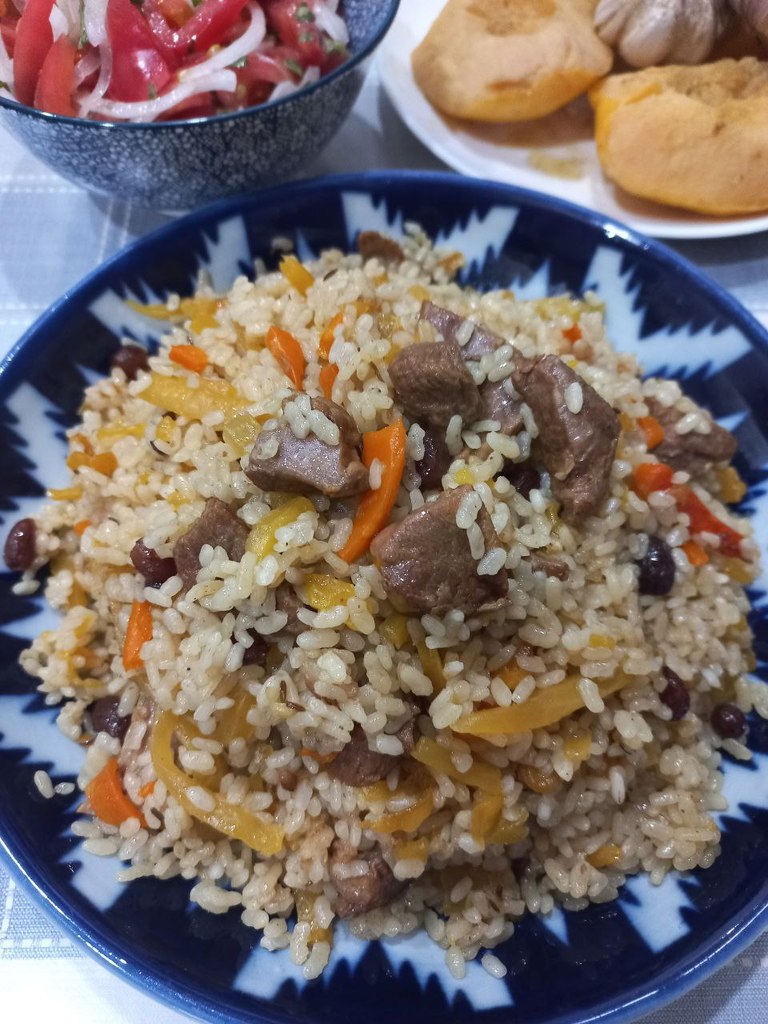 самош в регистан террасе на мукими, двоякое впечатление, вид хороший, морковь сочная, мясо маловато, но мягкое, рис чуток недоварен, но это не критично
