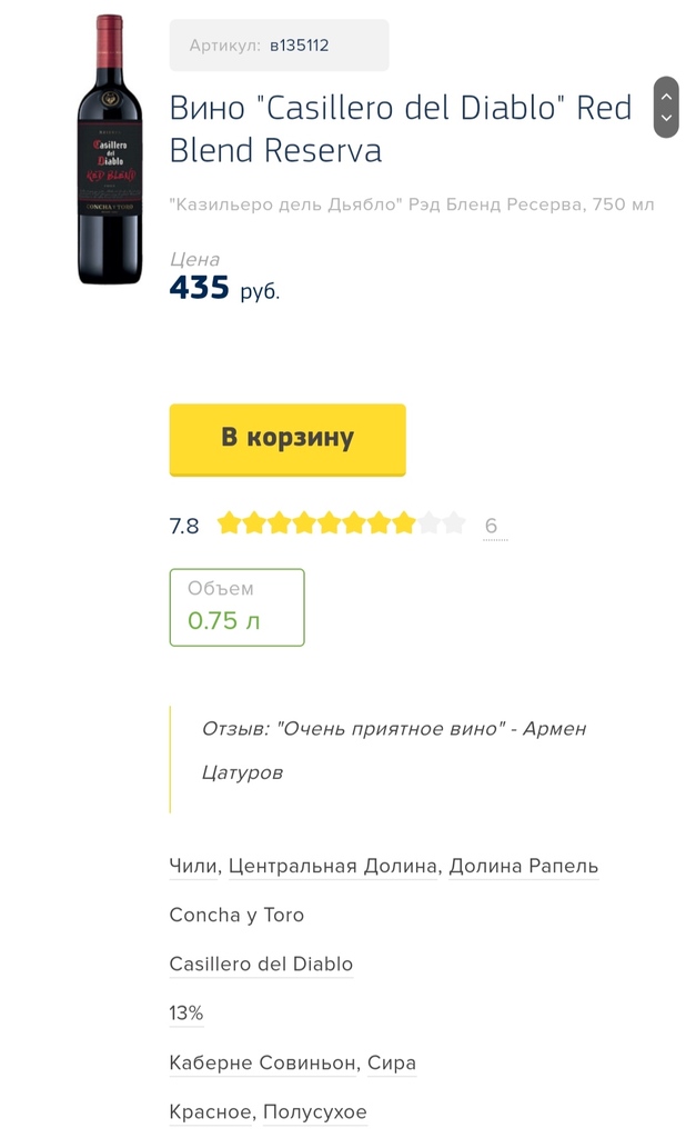 Вот хорошая марка чилийского вина. Я пил его за бугром и в РФ. Вино просто отличное. Практически по цене PJ по акции. Или подделка? ;)
