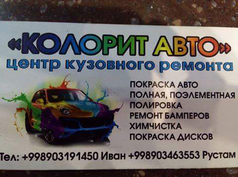 Для инфо, ремонтировал у них, ребята молодцы, главного мастера зовут хожиакбар, сделали четко, ваше не заметно, цена думаю справедливая, чуть дорого чем у других, но не так уш дорого в трижды, зато работа чистая и мастер пунктуальный сказал сделаю до вечера сделал, короче очень рад что ремонтировал у них, до них узнавал цены, в обычном сервисе сказали 500 тыс будет но будет заметно так как метал растянутый и уверяли что никто не сможет, в одном месте сказали ваше будет родной 101% но дорого и очередь там до декабря, на кукче сказали 100 енотов и  дали гарантию что будет идеально не заметно, так и получилось, короче доволен работой сделали идеально!