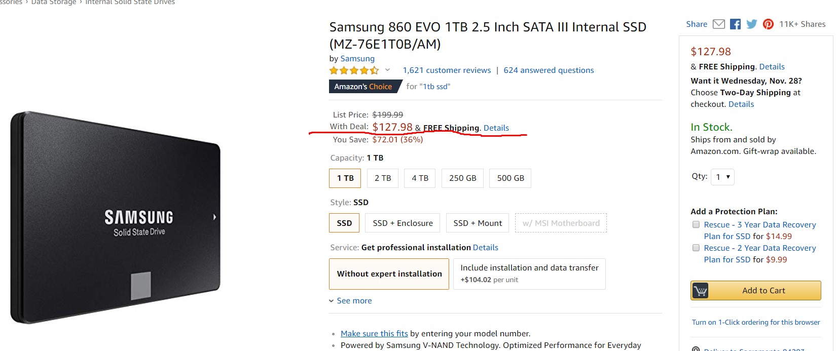 2.5 Samsung 860 Evo 2.5" 1tb за 128 долларов.