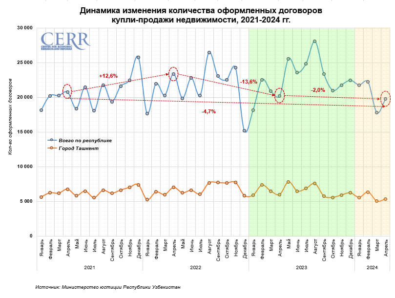 Posted 13.05.2024 14:47 1 час назад, Арднех сказал: Рынок жилья Узбекистана в апреле оживился, цены на вторичное жилье растут После некоторого снижения в марте, апрель отмечен некоторой активностью — сделки идут вверх. Рынок аренды напротив, снизился. https://kun.uz/ru/news/2024/05/13/rynok-jilya-uzbekistana-v-aprele-ojivilsya-tseny-na-vtorichnoye-jile-rastut В целом по стране падает, но только в столице и Ташкентской области минимальный рост. 0 Share this post Link to post Share on other sites