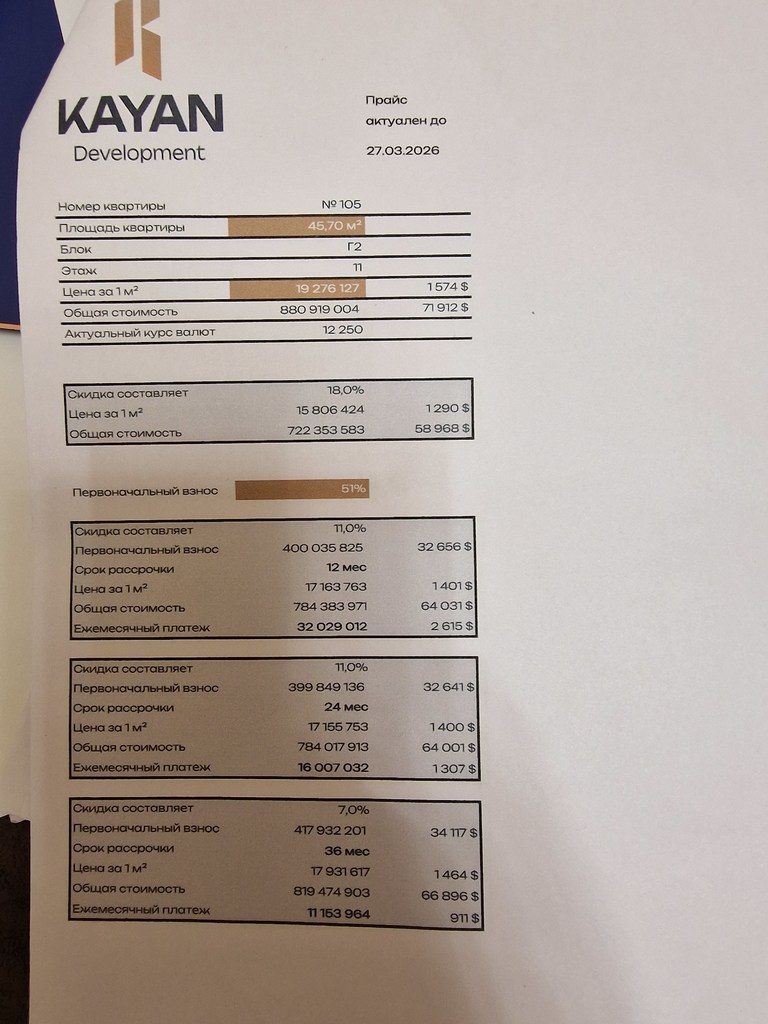 3. На листе 1 комн квартиры 27 м² написано скидка 20%. Это если сразу налом оплатить?