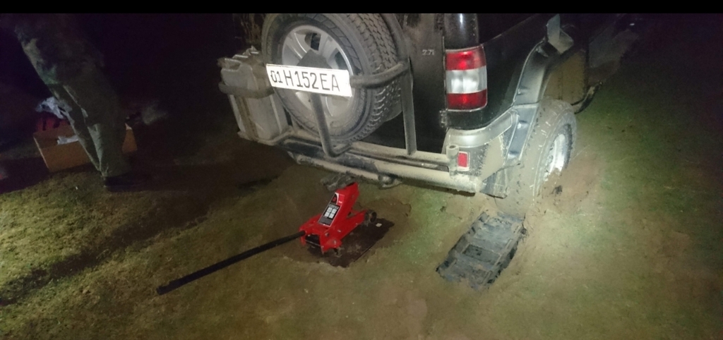 А, ну тоды  "ой". А так - обленился ты, дядька.  Я вон - недавно вынужденно штатным  пользовался... удобный, окацца!:lol: Из минусов: не запачкав штаны - не поставишь, особенно под заднюю  ось. И это на моем. А у тебя задний свес - еще длиннее. И второе - нужно возить с собой кусок доски, чтобы под домкрат ставить в тех местах, где нет асфальта..