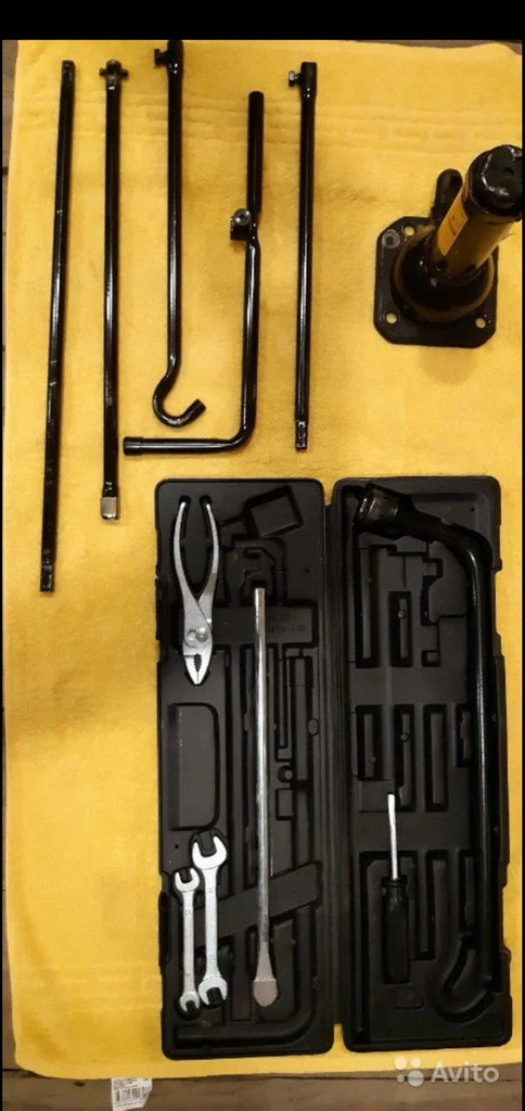 Похожий, только у меня в коже молодого дермантина, а не в коробке. Вся эта сикильда составная гуляет, расцепляется и приходится лезть под бампер нормально выставлять домкрат. Крутить-да, можно и за эту кочергу.
