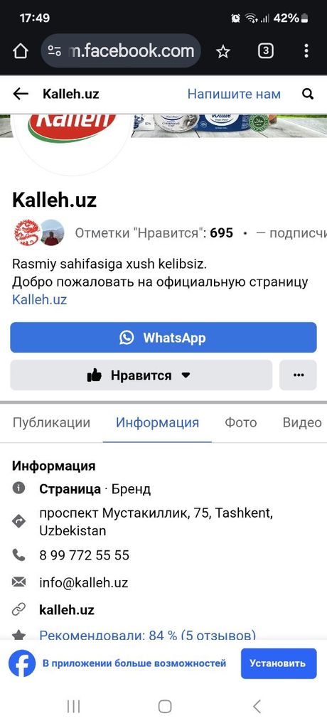 Posted 01.11.2024 13:47 1 час назад, DOS сказал: На Беруни тоже есть Экобазар:) Алиса, ты меня не путай! (с) Ищите на прилавках супермаркетов или приобретайте в брендовом магазине KallehEX, расположенном в Ecobozor Чимган✅ 47 минут назад, shurik2004 сказал: Вот, не знаю правда насколько актуальная инфа. Яндекс-карты подтверждают расположение Kalleh по этому адресу, правда, пишут, что продажа оптом. Вообще, там же находится Инконель. Это - прямо знак свыше, чтобы сходить проверить Пушкина (ныне Мустакиллик),75 - мое место жительства до момента сноса нашего двора. 1 Share this post Link to post Share on other sites