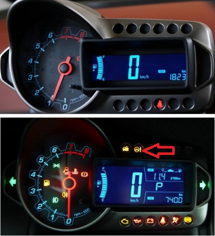 Ну во-первых на фото панель приборов не от кобальта, а от Авео Т 300, ну а на счет кобальта, то там на 1-2 позах обычная панель, без указателей БК, а на 3-4 позах полная приборная панель с показаниями БК.