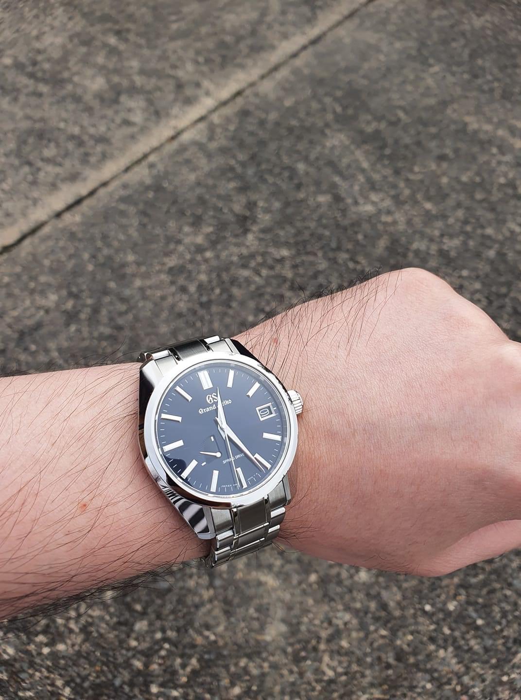 Как планировал, приобрёл себе Гранд Сейко. После долгих раздумий купил следующие. Классический кейс (44гс), уникальный спринг драйв механизм, циферблат темно темно синий - при малом освещении кажется чёрным. Часы застряли в сша к сожалению из-за карантина