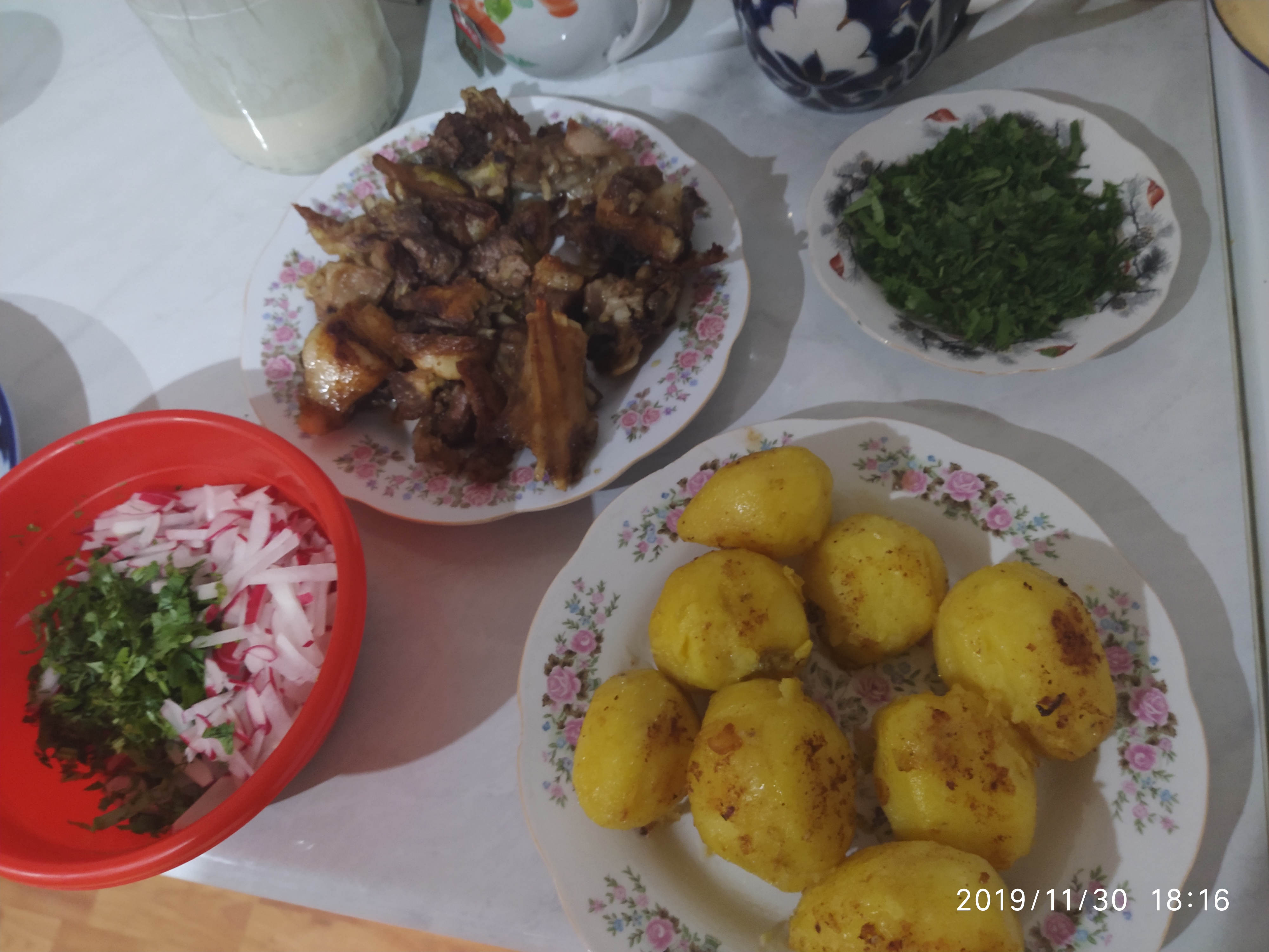 Мясо не свежая, 10 дней назад зарезали для мероприятие, ручки ножки думба ушли на плов, остальное жена засолила и отложила в морозилку.