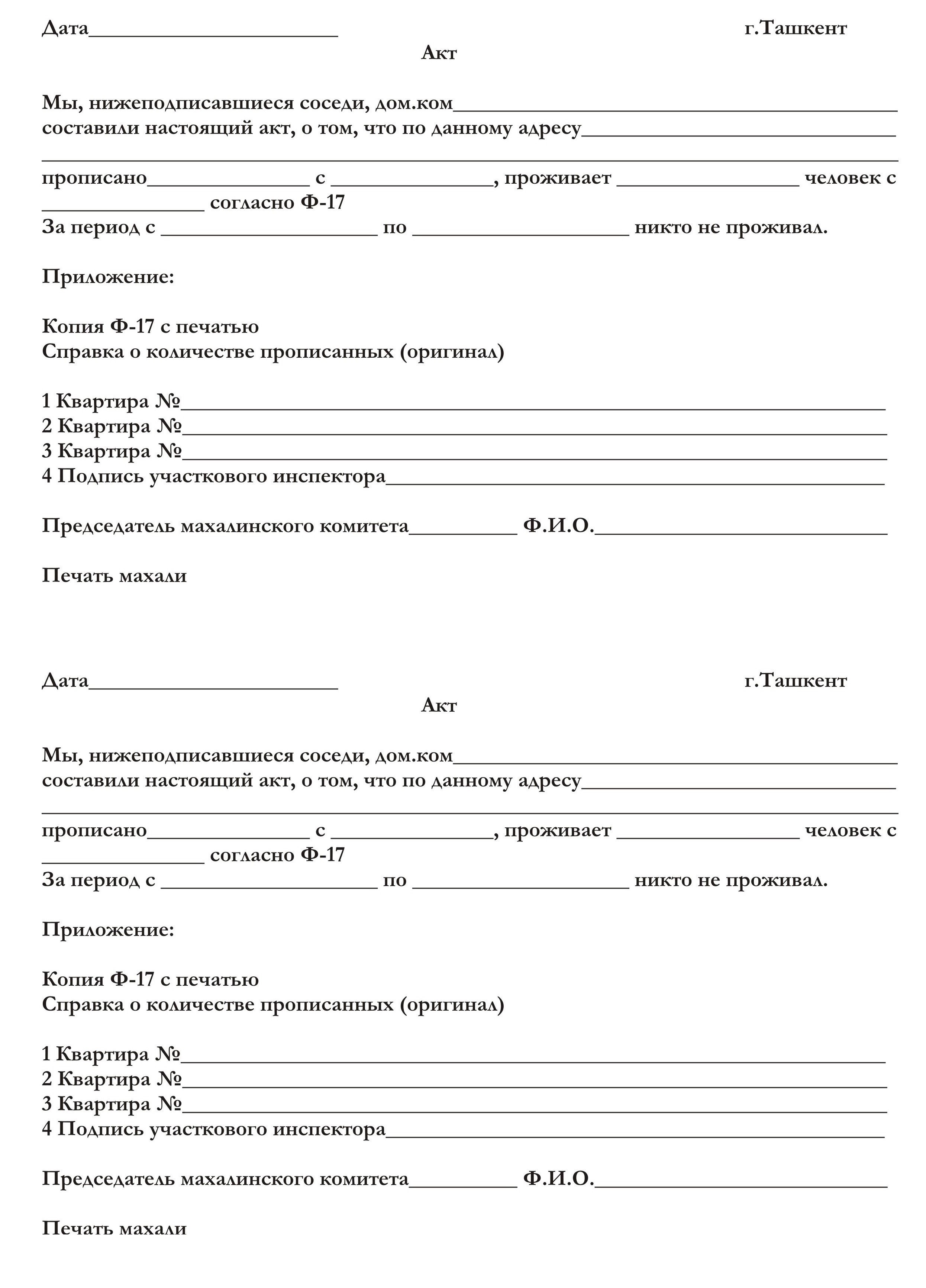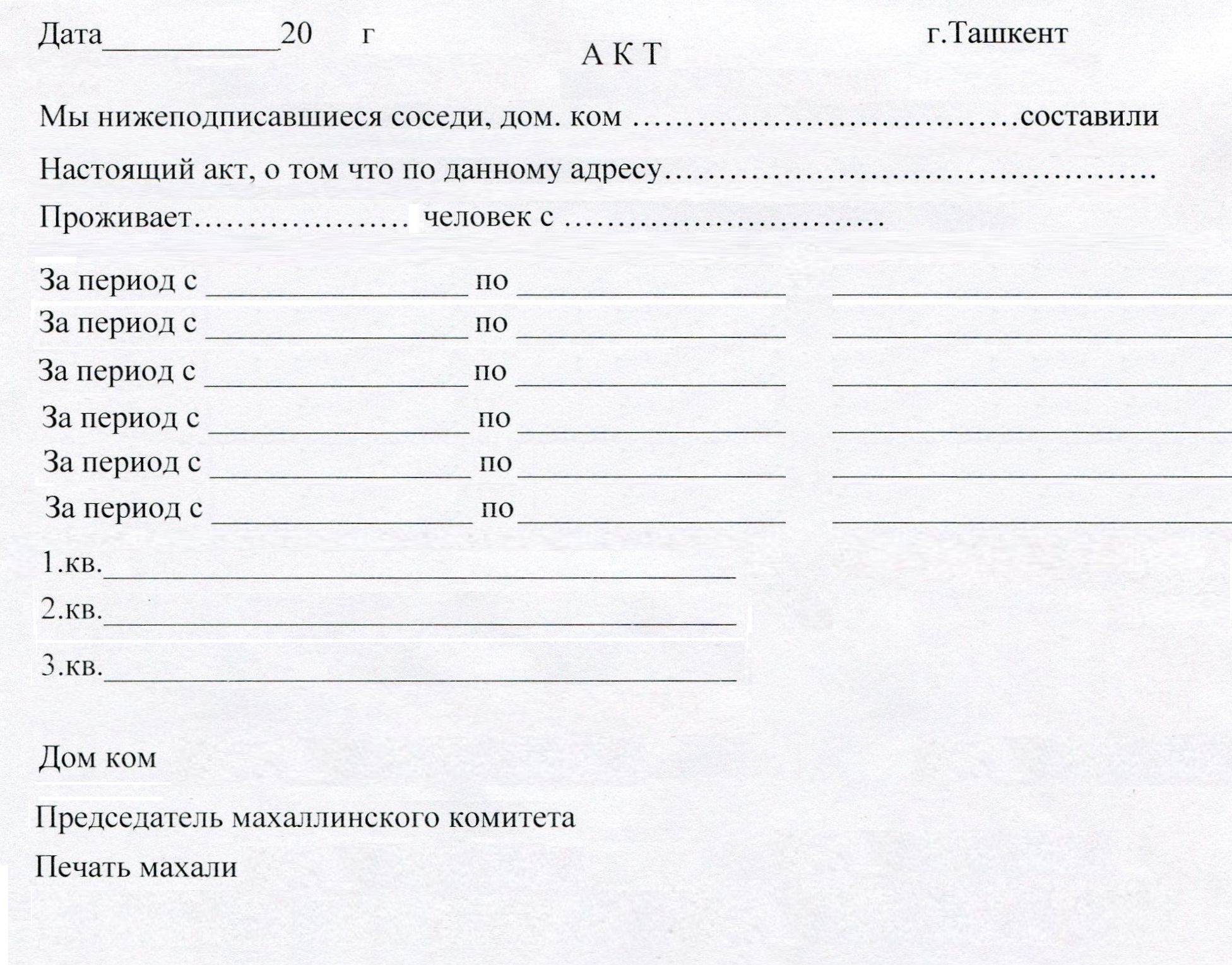 Posted 18.11.2019 15:06 Уважаемые форумчане! Если у кого есть форма акта о фактически проживающих с подписью соседей (счётчика нет, прописан 1 человек, приписали ещё 2-х временно проживающих). Заранее благодарен. 0 Share this post Link to post Share on other sites