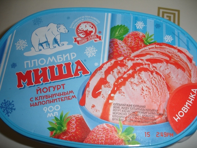 "Однако!"(Киса) " Бывало на моих глазах трамвай переезжал человека, но мне не становилось от этого легче, когда мне наступали на ногу"(М.Зощенко). Сегодня Мишу 900мл 490г за 31тс  йогурт с клубникой взял в Семейном- не понравилось, жена ест, соскучилась, что ли? В Макре видел Мишу,НО, шоколадный, не стал даже смотреть почём. Мне в картонном тетраэдре запомнился рожок.