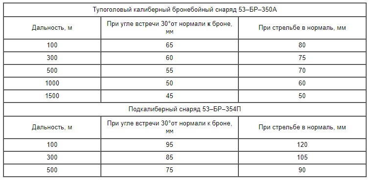 скорее СУ-85.. "сотка" опоздала, ее только в 45м начали на фронте применять.. с другой стороны емнип "зверобоями" называли ИСУ-152 (там фактически самоходка строилась вокруг гаубицы МЛ-20). И опять же - не калибром единым.. большое значение имеет длина ствола. Взять ту же Пантеру - там калибр был 75мм (меньше чем у первой модификации Т-34 - 76мм), но вот длина ствола была 70 калибров - в 2 раза больше. От того выше начальная скорость снаряда и его бронепробиваемость. При модернизации Т-34-76 в Т-34-85 пошли в том числе и этим путем, не только увеличив калибр пушки до 85мм, но и длину ствола до 50+ калибров (а надо было и больше, но больше никак не получалось - башня была слишком близко к носу танка, он и с 85мм пушкой черпал землю). Но это был, так сказать, "экстенсивный" путь развития - калиберные бронебойные снаряды имеют не очень высокую начальную скорость.. т.е. путь в никуда. Что до подкалиберных - они уже появились у СССР в 42-3 годах в разных калибрах и давали существенный прирост бронепробиваемости.. вопрос только в дороговизне материалов для их изготовления, в то время как для калиберных использовались легированные стали (наверное потому шли "экстенсивным" путем). Вот для примера сравнение пробиваемости для 76мм ЗИС-3 калиберными и подкалиберными снарядами
