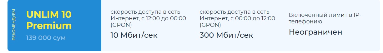 Кстати, хорошая новость для АДСЛщиков. Там тариф Анлим 7 появился для них. Стоит 109 000 сум/месяц.
