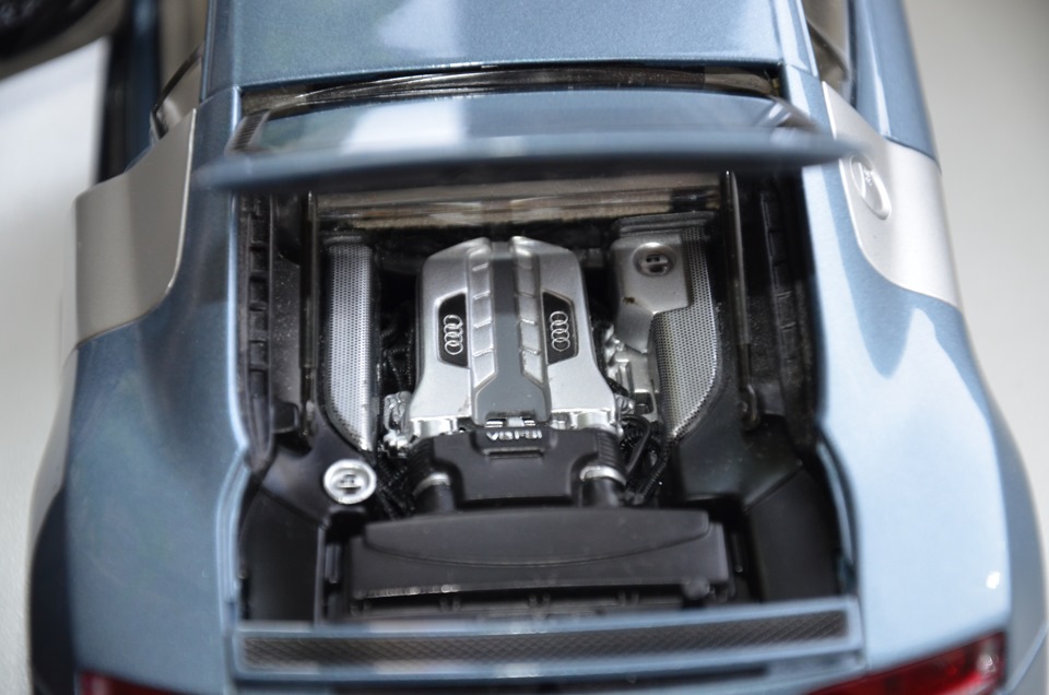 Детализация конечно же впечатляет, но вот зернистость ЛКП вносит свою "ложку дёгтя". Жаль конечно же, что производители пока не уделяют этому факту должное внимание. Кстати, не знаете в каком масштабе был произведен автомобиль с действующим ДВС, случайно не в 18-м?