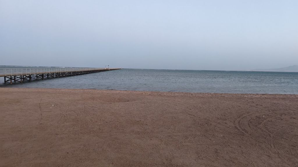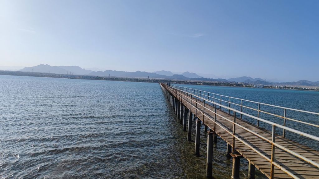 Жирный минус восточного Шарма в том, что у берега море мелкое и каменистое. Что бы хотя  бы по пояс надо далеко идти. По обломкам кораллов. Ну или идти около 500-900 метров по специальному пирсу, где в конце будет огороженный загон для купания. Вернее для снорклинга.. И он закрыт, если есть ветер или волнения. А ветер в данный момент постоянно, не прекращается.