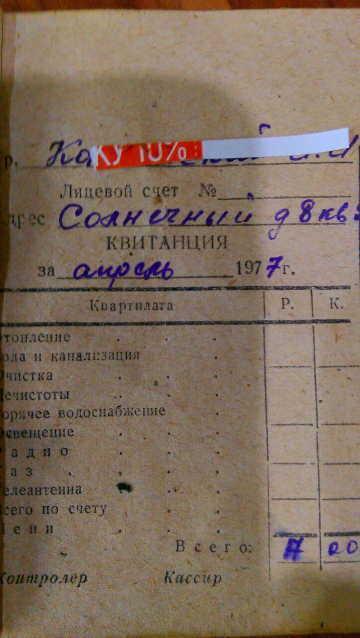Posted 25.11.2018 12:05 59 минут назад, Волговод сказал: Как и обещал ранее, публикую "жировку" времен СССР. Для понимания юным поколением всех ужасов тоталитаризьма. грубо 1/10 средней на тот момент зарплаты за ВСЕ коммуналки В 11.09.2018 в 13:49, Волговод сказал: И на счет 27 рублей: нашел "жировку" в семейном архиве. За все про все в середине 70-х выходило около 10 рублей. Газ, свет, отопление, горячая и холодная вода, канализация, телефон. Всё таки...с телефоном в два раза больше, ранее заявленной цифры выходило! 0 Share this post Link to post Share on other sites