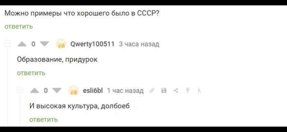 Posted 18.02.2021 10:00 Еще раз для тех кто в танке, Тема называется "Воспоминания о СССР", то есть личные воспоминания, а не "Кто какое говно в сети нашел и сюда приволок." 6 Share this post Link to post Share on other sites