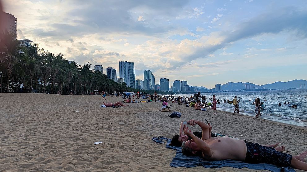 Пляж Нячанга с китайцами. Приходилось уходить подальше, что бы не толкаться с ними. Шумные очень.