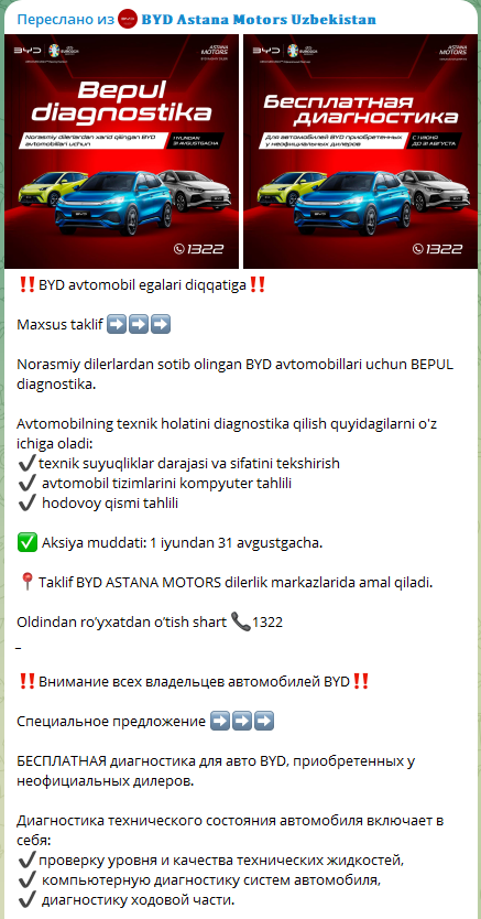 Posted 04.06.2024 18:41 51 минуту назад, Lunatic сказал: Есть марка масло? Или это официалом дают завозить? Не понял вопроса. BYD заключил с castrol соглашение и снйчас в канистрах BYD идет кастроловское масло имеет маркировку BOT 384 1 Share this post Link to post Share on other sites