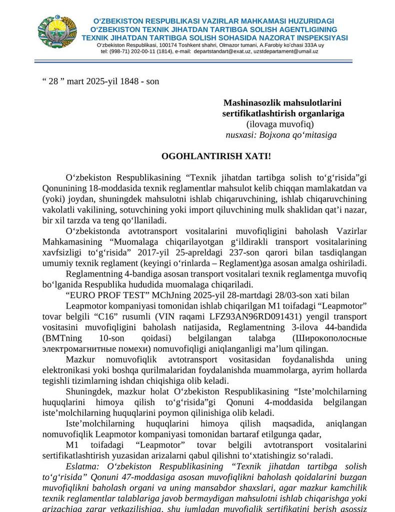 BYD из Узавто освобождены от этого, типа официальный производитель
