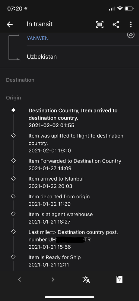 Продавец так и настаивал на отмене заказа , а я прямо ответить на мой вопрос про левый трек , так и не смог. Сейчас посылка прибыла в узбекистан и  трекнулась таким образом . Насторожил вес посылки ,  про фамилию написано, что она может быть указана не верно. Защиты у этой посылки еще 78 дней, так что разберусь пока с другими спорами, а потом открою и на эту посылку спор. Никогда у меня не было столько споров за короткий промежуток времени:facepalme: