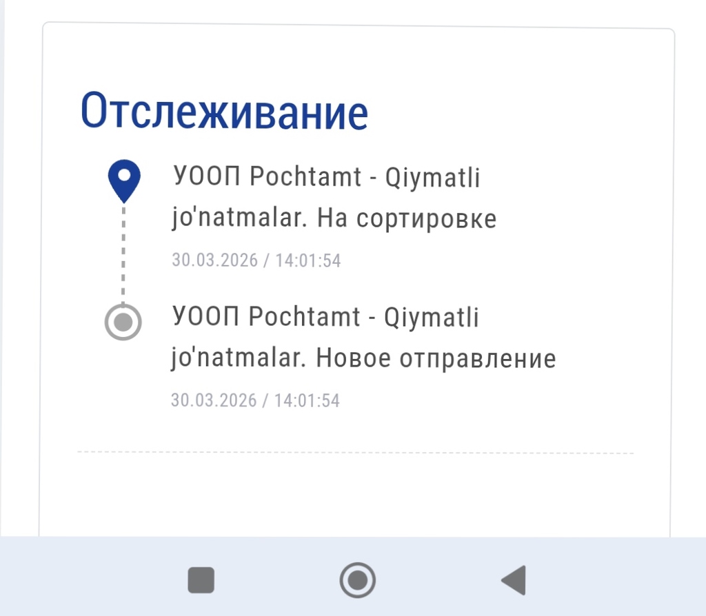 Стали доступны этапы доставки обоих посылок через трекер на узпост.уз. Первая прошла таможню и едет на сортировку. Вторая уже едет в мое отделение ( и в истории нет что прошло таможню). Повезло, обе посылки заберу за одно посещение.
