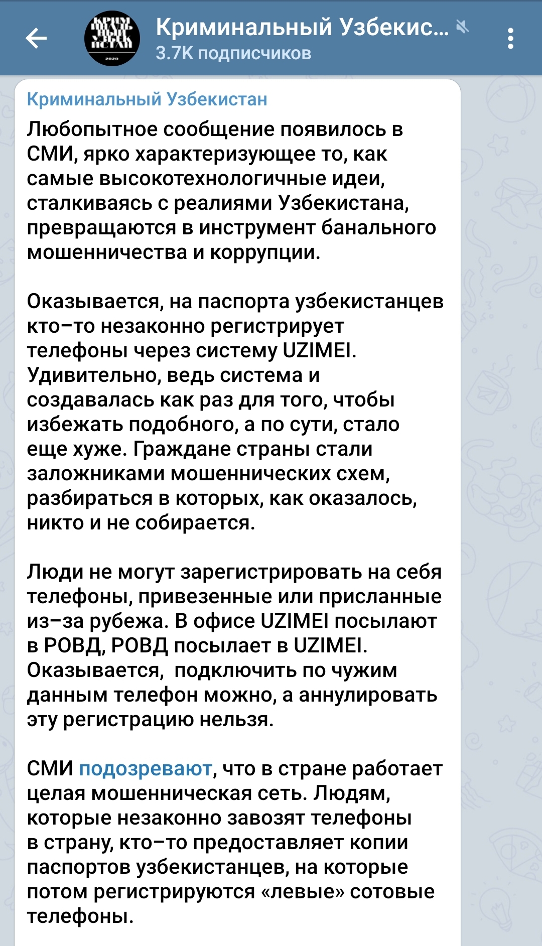 Posted 02.09.2020 06:29 (edited) 15 минут назад, Ташкент-2009 сказал: https://podrobno.uz/cat/obchestvo/sistema-uzimei-stala-obektom-dlya-ataki-moshennikov-polzovateli-zhaluyutsya-chto-na-ikh-pasporta-kto/ Интересная Афера... Ничего неожиданного нет, конечно... в Сеть много чего утекает.. Вопрос ребром - почему я не могу зарегистрировать на себя 2 или 3 аппарата? CDMA & GSM - например. Кто решил, что мне нужна только одна трубка? Иначе у нас и быть не могло. Система изначально создана с огромными дырами для коррупции. Единственный способ с этим справиться - это её ликвидировать. И это, заявление в РОВД по любому надо написать. Нанесён материальный ущерб в размере, как минимум, стоимости телефона. Edited 02.09.2020 06:31 by Немой 5 Share this post Link to post Share on other sites