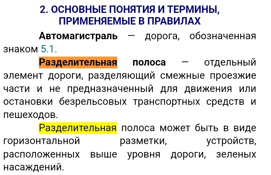 Posted 17.03.2024 11:14 (edited) Спойлер 9 минут назад, spy_cam сказал: ну теперь тебе встречно, натяни свою цитату на наш ПДД. т.к. у нас оно выглядит иначе: Цитата ajratuvchi mintaqa — yo‘lning yonma-yon joylashgan qatnov qismlarini ajratuvchi, transport vositalari harakatlanishi yoki to‘xtashi uchun mo‘ljallanmagan, yo‘l sathidan ko‘tarilgan yoki maysazor, ariq, maxsus to‘siqlar bilan ajratilgan baland qismi; Edited 17.03.2024 11:15 by celllular25 2 Share this post Link to post Share on other sites