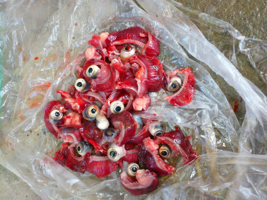 Скорее всего рыба была маленькая, кильки может, пачку сигарет рядом не положишь весь улов в эту пачку поместится :) сфоткал поближе и думай гадай чьи это глаза, похожи на монстров полуметровых