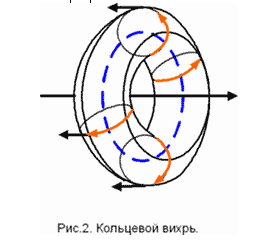 В протоне винтовое движение частиц замкнуто в тор, т.е. протон представляет собой тороидальный вихрь (рис. 2). Существуют два противоположных по винтовому движению тороидальных вихря: тороидальный вихрь с левым винтовым движением частиц и тороидальный вихрь с правым винтовым движением частиц. Один из них будет протоном, второй — антипротоном. При столкновении двух разнонаправленных вихрей, они аннигилируют (уничтожаются) с выбросом энергии.