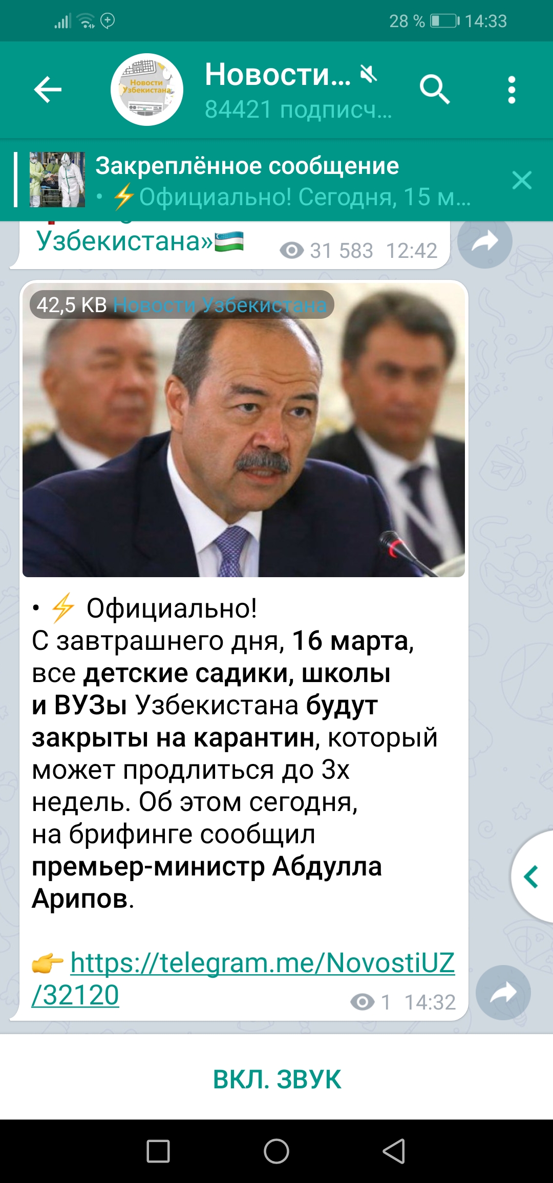 С 16 марта Узбекистан закрывает авиа- и автодорожное сообщение с другими странами. На решение вопроса закрытия железнодорожного сообщения отведено три дня.