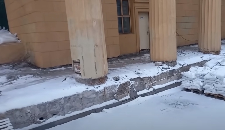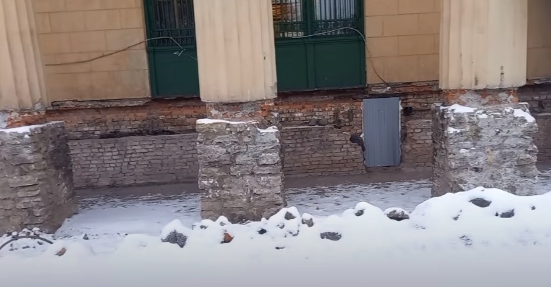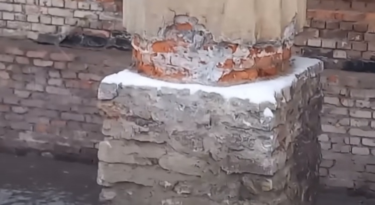 Колонны стоят на плитяке(?) "фундамент" гидроизолировали и доложили кирпичом и вход в подвал(?).