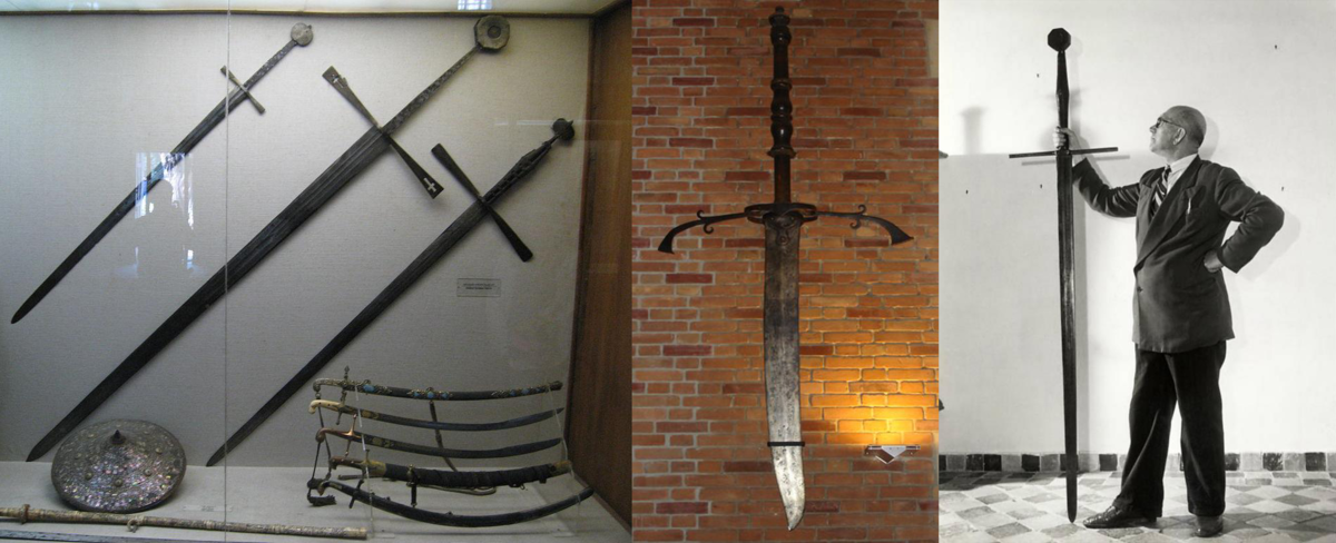 Я подобные мечи видел в Сокльниках, на выставке русского оружия. Был не один, с другом, который метра в 2 ростом. Так он таким мечом размахивал, аж нард разбегался....