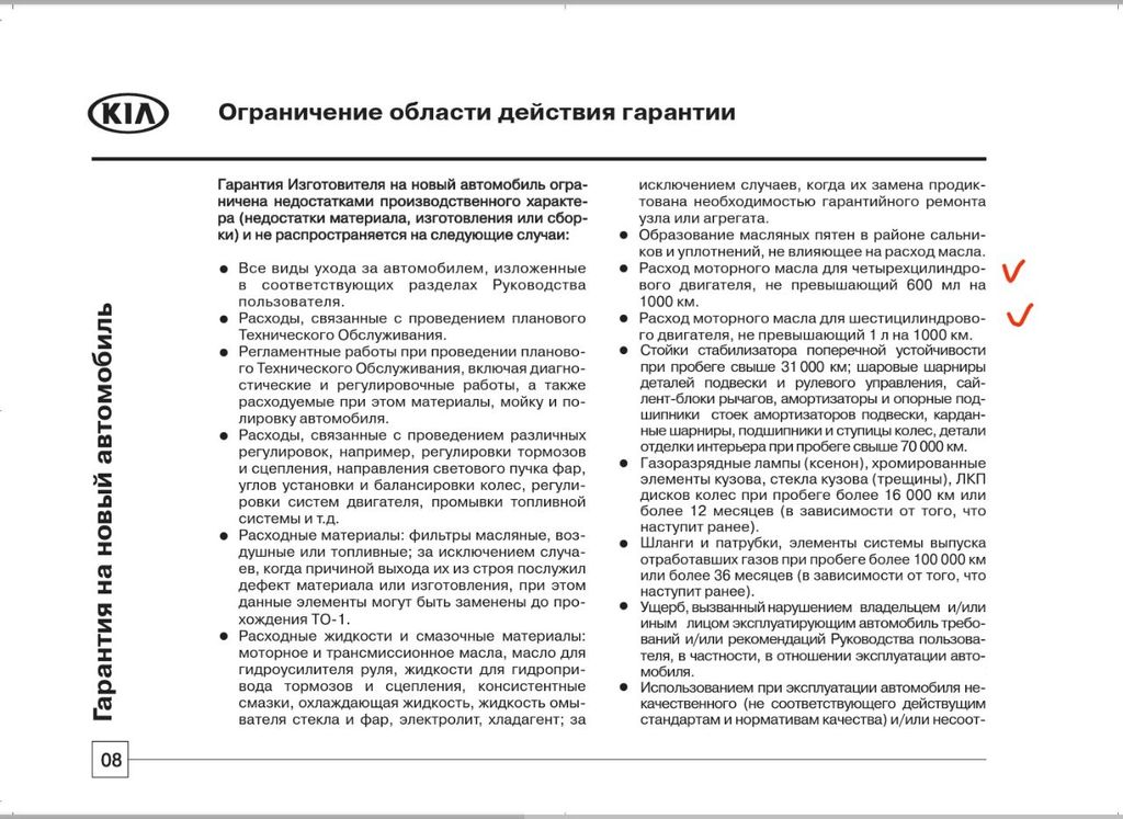 ты сервисную гарантийную книжку KIA читал? За 2019г у меня есть в пдф такая от Росс официального дилера. Так вот, после 10 000км пробега, в поддоне масла может не оказаться вообще! Так как масложор в 600-1000гр на 1000км не гарантийный случай их автомобилей ;)