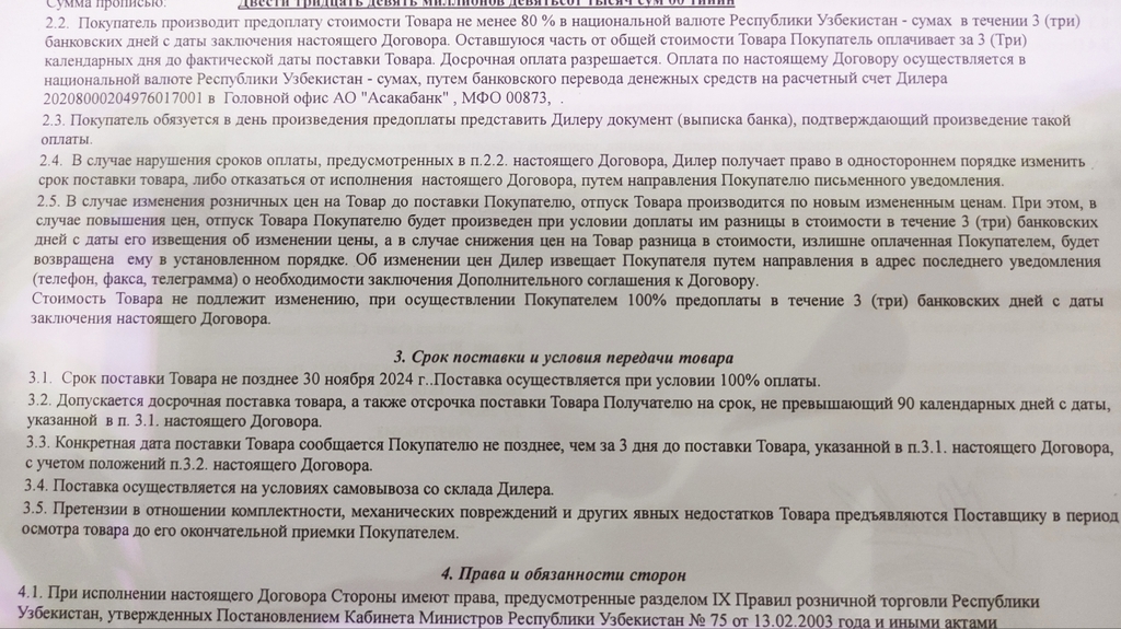 Первым покупателям сонет устно обещали выдать авто в мае, но в договорах написано июль. Так же есть пункт где написано что выдача оплаченного авто может задержаться на три месяца без штрафов и пени, а если захочешь вернуть деньги то штраф 5%. Ну и пункт где написано что при подорожании придется доплатить если не оплатил 100%.