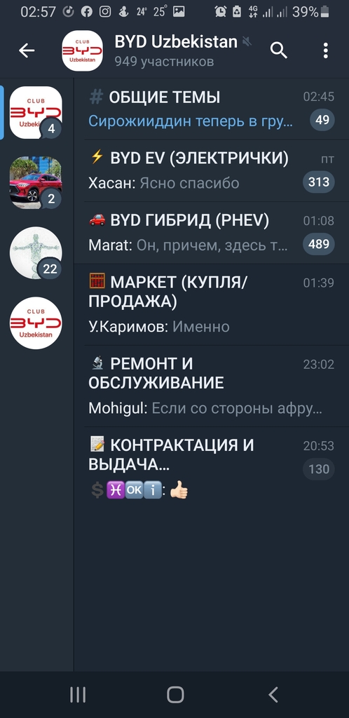 Posted 24.07.2023 18:30 В 21.07.2023 в 16:22, mix сказал: Товарищи, прошу поделиться впечатлением от эксплуатации BYD Song DMI? Владеем всего 5 дней. Пока в целом восторг. Плюсы: 1. Футуристичный дизайн салона. Вау эффект такой, что сев назад в Туссан я словил ощущение что сажусь в уазик. Но тут палка с двумя концами - кому то может более консерватинвный дизайн туссана нравится больше. 2. Разгон. Даже на 2ой позиции (передний привод) - разгон просто кайфовый. Очент динамичная телега. 3. Расход. Мать его расход!!! От сиадиона Бункдкор, до Шастри, и обратно - уходит 15% АКБ. А это всего-то 3,5 кВт электроэнергии примерно. Рекуперация творит чудеса. 4. Адаптивный круиз - очень удобно даже в городе. Правда нет гарантии что не отпуеешь. И при перестроении, лучше отключать. Минусы в сравнении с Туссаном 1. Звук штатной аудиосистемы полное говно. Тут вообще в сравнении с чем угодно. 2. Теплоизоляция хуже Туссана. Не знаю как так, но в машине более жарко. 3. Климат не такой дружелюбный, как в туссане. То холодно, то жарко. В туссане все мягко. 4. На водительском сиденье нет поясничного упора. Хотя все же сидения очень даже удобные. Заключение: в целом, тачка стоит своиз денег, и имхо туссан как раз не стоит. Имхо, рулежка, поведение машины на дороге похоже на GM. Я бы управляемость сравнил с Кобальтом. Туссан ведет себя по-другому. Мне ноавится меньше - слишком легкий руль, боььшие крены в повротах. Но при этом туссан намного мягче. Сонг как-будто спортивная тачка. В 21.07.2023 в 19:11, Elix777 сказал: Идеальная машина для перехода от ДВС к электро. Машину продал, не нравилось ездить в режиме HEV, а заряжать по часу на 100км устаешь. Ко всему остальному претензий нет. В планах полноценная электричка. Так дома надо зарядку ставить. А так HEV заряжать на заправках смысла нет совсем. 17кВт на ТокБор стоит 36 000 Сум. Нафиг оно надо? 95й бензин дает 20 - 25 км пробега на литр. При цене 10500 Сум, бензин выходит даже чутка дешевле. А вот дома будет чистый праздник: 20кВт электричества будет стоить 8000 Сум. Этого хватит на 80км. 2 Share this post Link to post Share on other sites