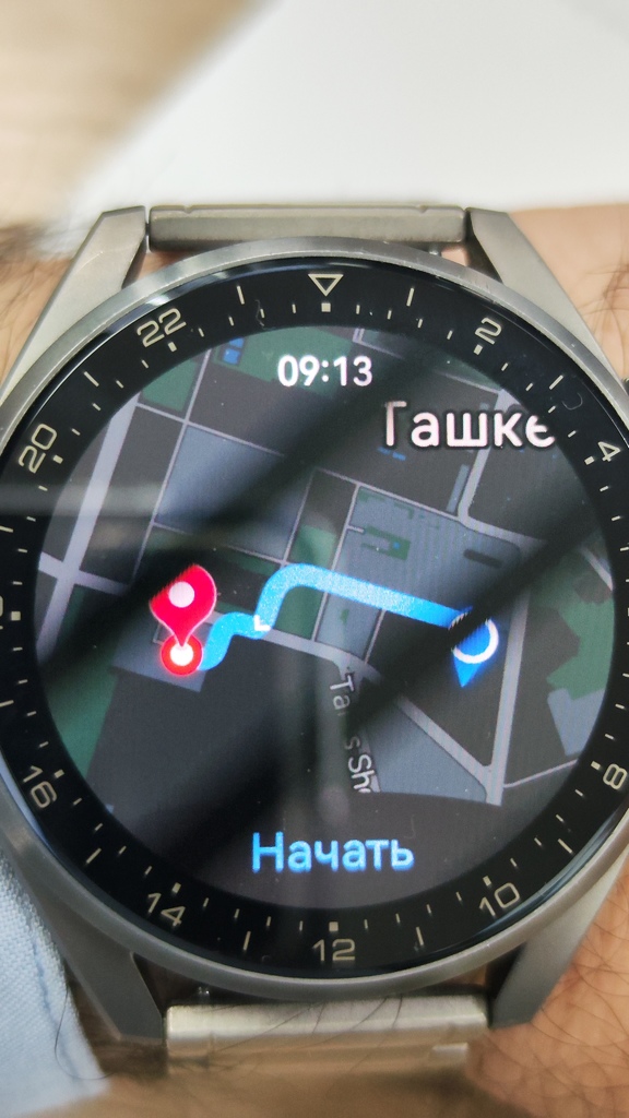ну короче как то так выглядят. хожу помаленьку. плеваться перестал. оказывается живые стрелки это очень удобно. единственное в темноте надо кнопку нажимать чтоб была обратная подсветка и по положению тени стрелок понимать сколько времени (или включить просто на циферблате цифровые часы). но конечно все равно выглядят как игрушка для детей. разобрался с навигацией. тоже. не гуглмап. но пользоваться можно. показывает только точки и путь. как таковой карты нет. всё очень аскетично.