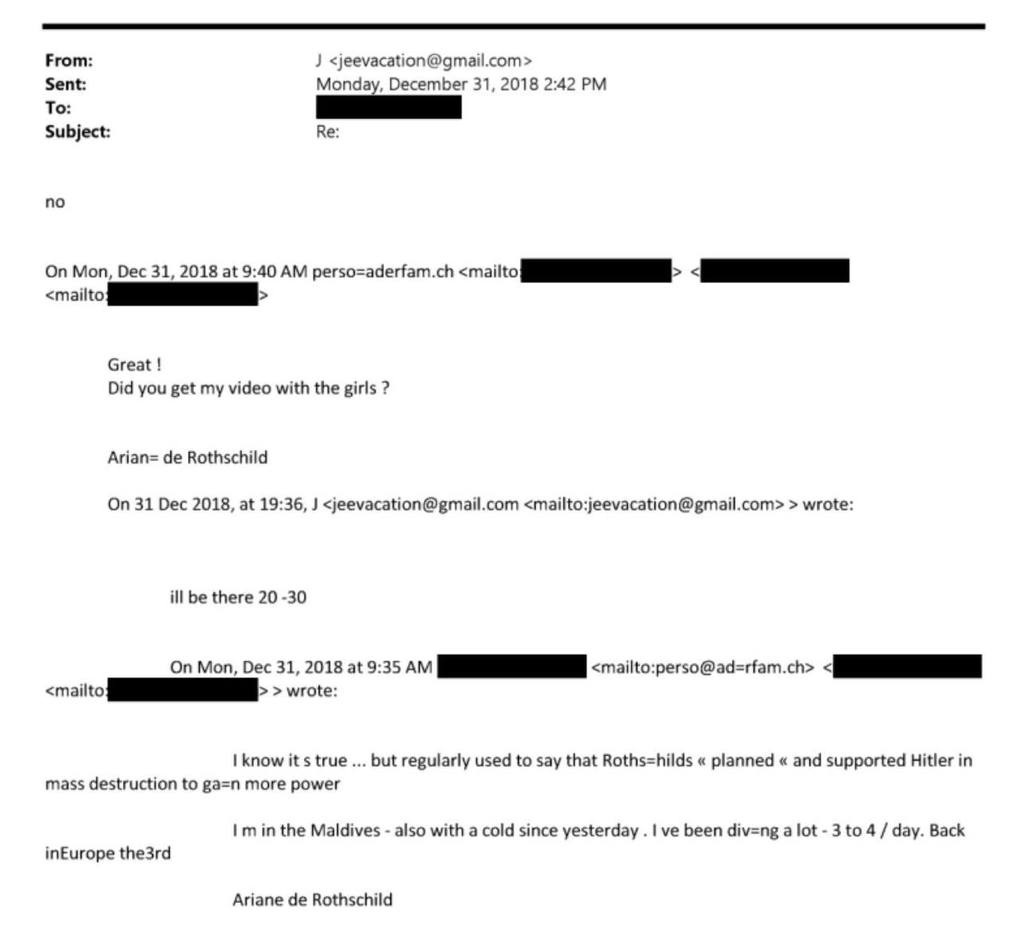 Posted 03.02.2026 20:57 Тихие сенсации переписки с Эпштейном. Ариан де Ротшильд, управляющая банком Ротшильдов с 2013, сообщила Эпштейну в электронном письме в декабре 2018 года, что её семья "планировала и поддерживала" Гитлера в "массовом уничтожении с целью получения большей власти", а также спросила, получил ли он её видео "с девушками". Как в это поверить вообще? Кто на самом деле это писал? В противном случае всех Ротшильдов надо вернуть в Нюрнберг. Неожиданное признание аферы века "Холокост" 0 Share this post Link to post Share on other sites