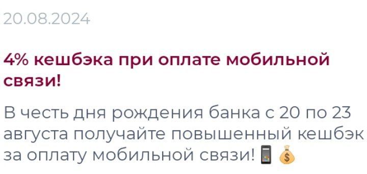У Анора акция, кэшбек 4% за оплату сотовой связи. Можно платить с карты любого банка, прикрепленной в приложение Анор.