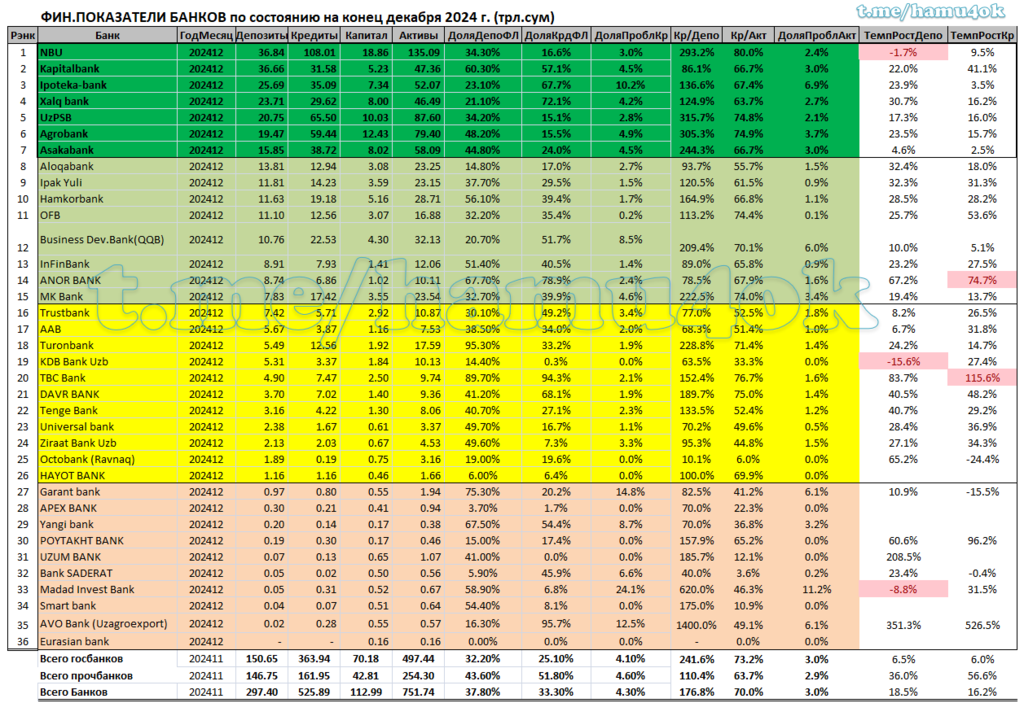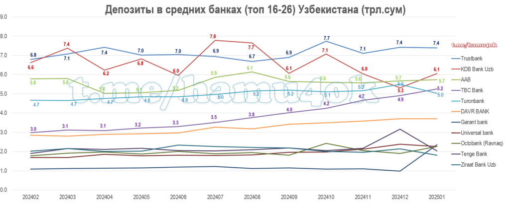 интересные графики: Анор банк вплотную подтянулся к Хамкорбанку и твёрдо (тьфу, тьфу) стоит в серёдке топа15 банков страны. Тенге банк по депозитам физлиц скромно курит в сторонке ;)