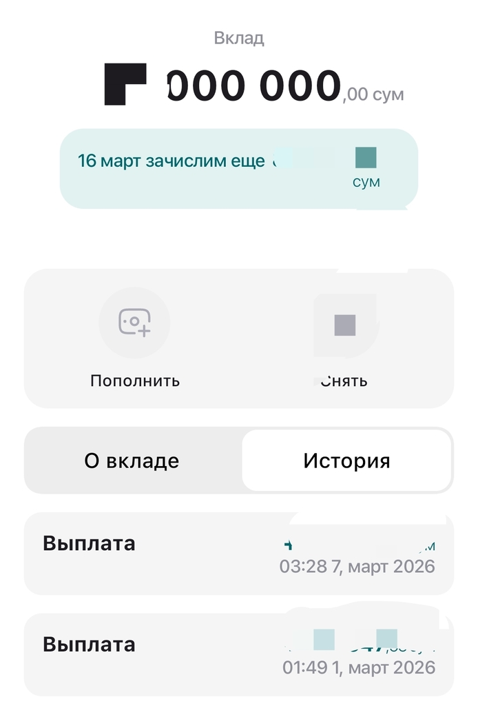 Posted 11.03.2026 19:25 Хаёт банк оригинально начисляет еженедельные %% по онлайн вкладу. Всю дорогу выплачивали на 7-8 день. Сейчас крайняя выплата была 7го марта, а след %% будут 16го 0 Share this post Link to post Share on other sites