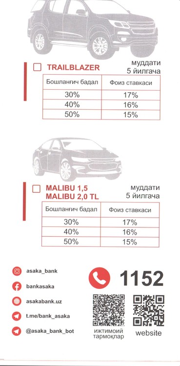 Posted 11.06.2020 12:25 (edited) Почти 3 года тут никто.ничего не пишет.Неужели народу не интересен автокредит.В Асака банке идёт акция по автокредитованию.От 15 % годовых и сроком на 5 лет.По моему приемлемые условия. Edited 11.06.2020 12:25 by yura aka 0 Share this post Link to post Share on other sites