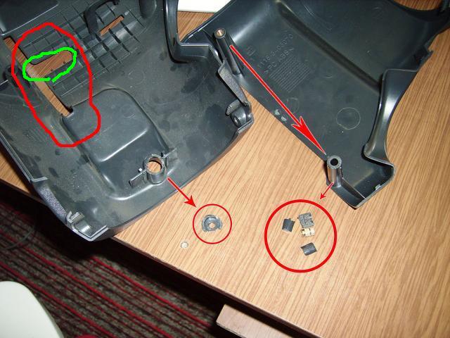 Добавлю что при сборке нужно отрегулировать кожух бо иначе будет за руль задевать и трещать - те самые нижние саморезы ослабить и сместить кожух так чтобы он не задевал руль и затянуть, предварительно покрутив немного руль. И еще осторожно затягивать болты которые в углублениях (они крепят половинки кожуха между собой), пластмасса очень хрупкая и может треснуть и тогда придется колхозить как я.