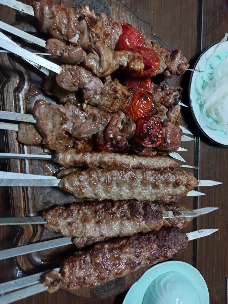 Мне вообще не зашёл кавказский шашлык. Большие куски мяса слишком, ещё и без маринада. Мне нравится есть с палочки,  и чтобы у мяса был привкус маринада.