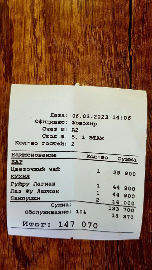 Всё вкусно, порции чуть меньше чем на Полевой, и на 5 000 сум дороже. Обалденные пампушки приготовленные на пару.
